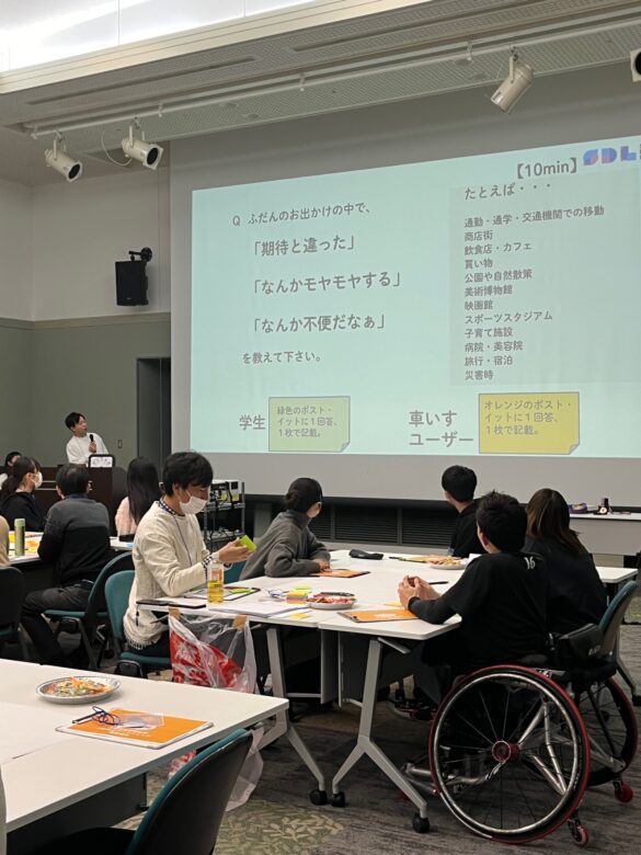 ワークショップでは、学生目線・車いすユーザー目線で課題や想いを共有し、それらを解決するアイデアを出し合いました。