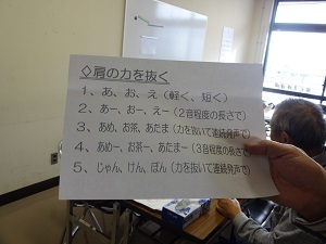 終始笑いの耐えない穏やかな雰囲気ですが、息つぎのタイミングや話し方について指導員から的確なアドバイスが入ります。